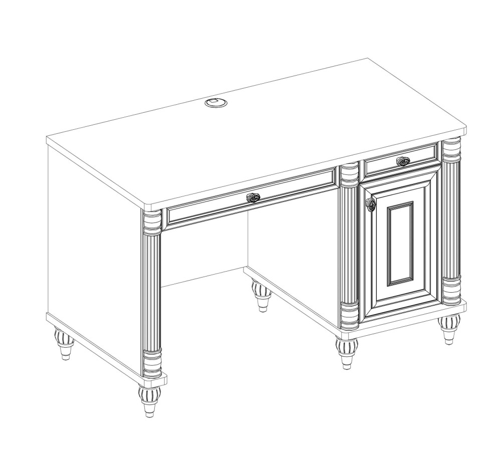 Biroul cu 2 sertare si o usa.