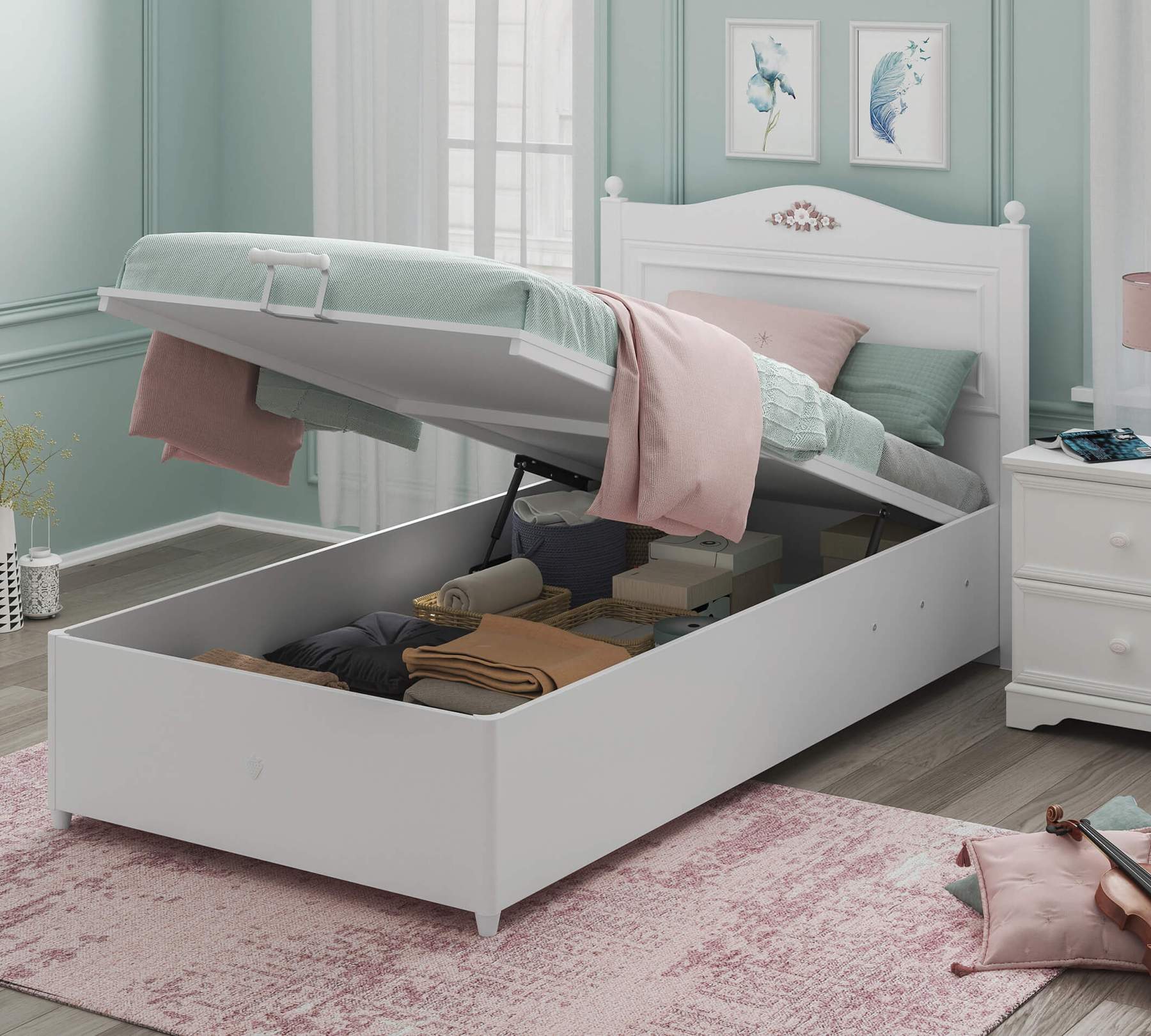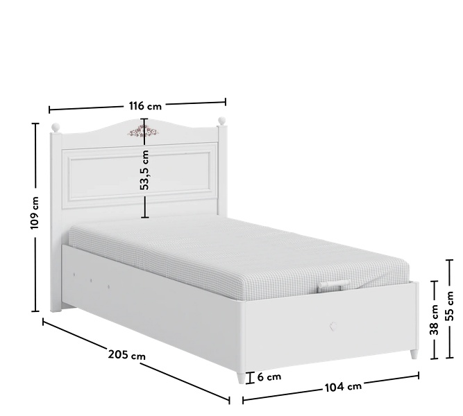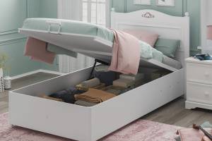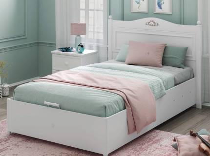 Patul este prevazut cu lada pentru depozitare.