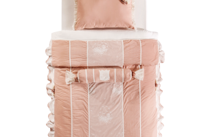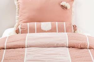 Setul cuvertură DREAM oferă eleganță și confort în dormitorul tău. Include o cuvertură delicată, o față de pernă și o pernă cilindrică, toate realizate din materiale de calitate. Designul său rafinat este perfect pentru un decor modern și relaxant, aducând un plus de stil și funcționalitate.