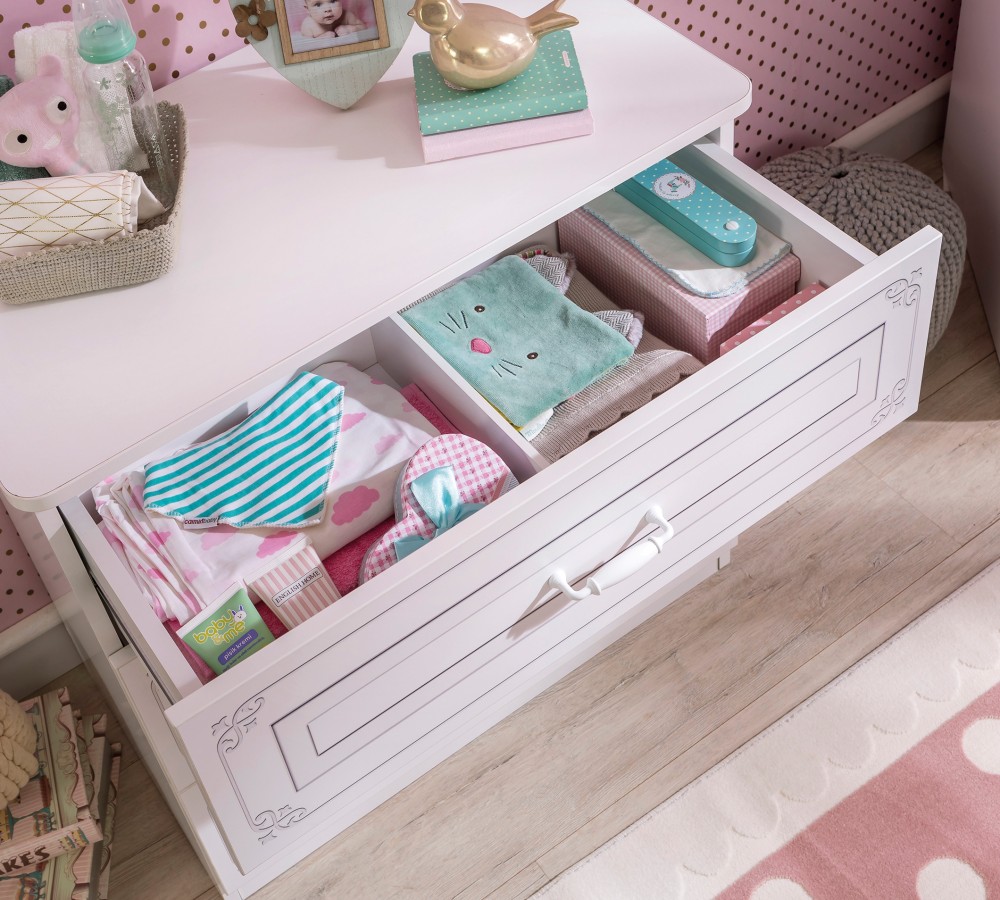 Colțurile comodei sunt rotunjite pentru siguranta copilului.