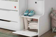 Patul superior are un spatiu pentru carti pe partea laterala care este detasabil.