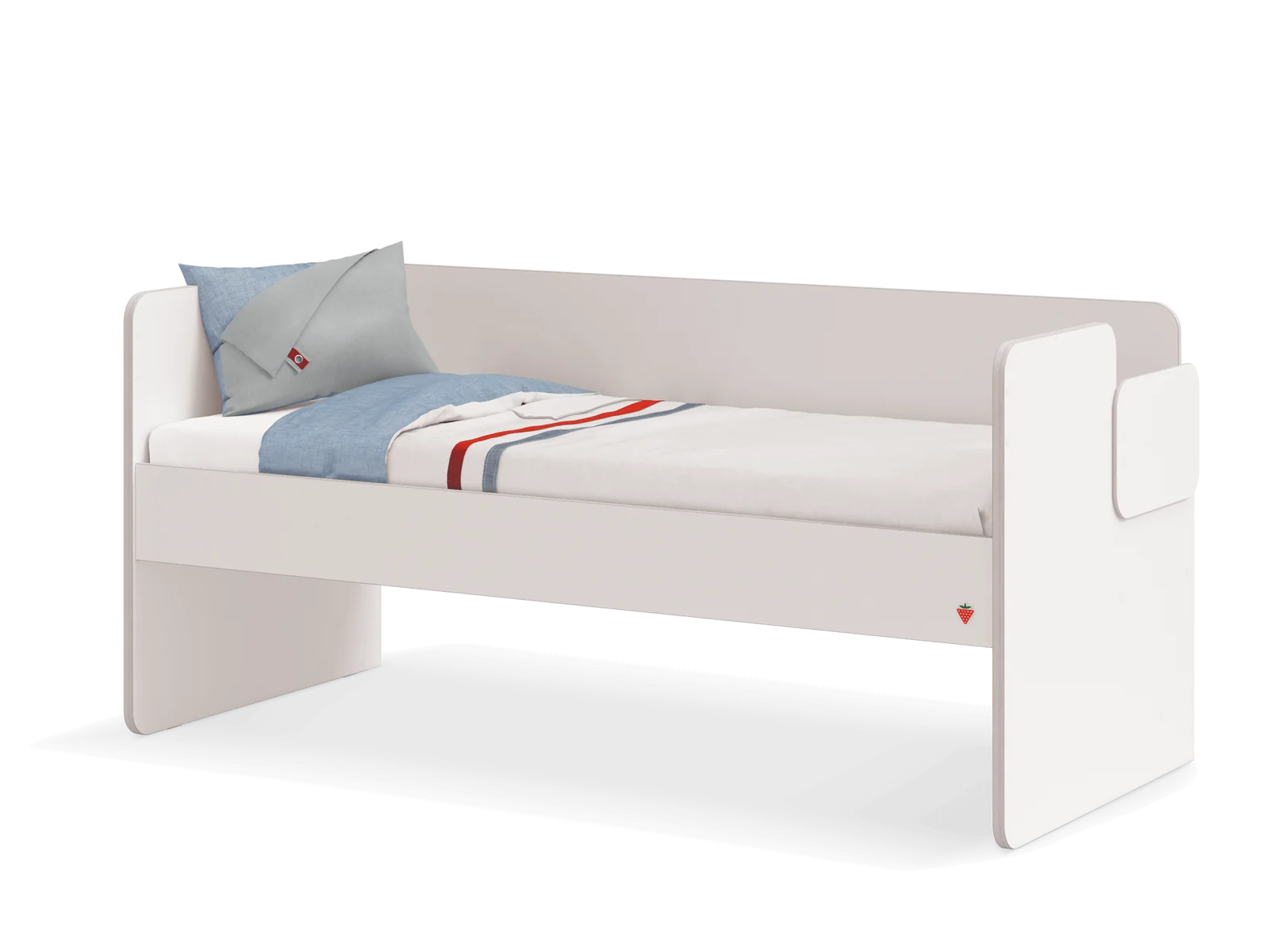 Patul superior are un spatiu pentru carti pe partea laterala care este detasabil.