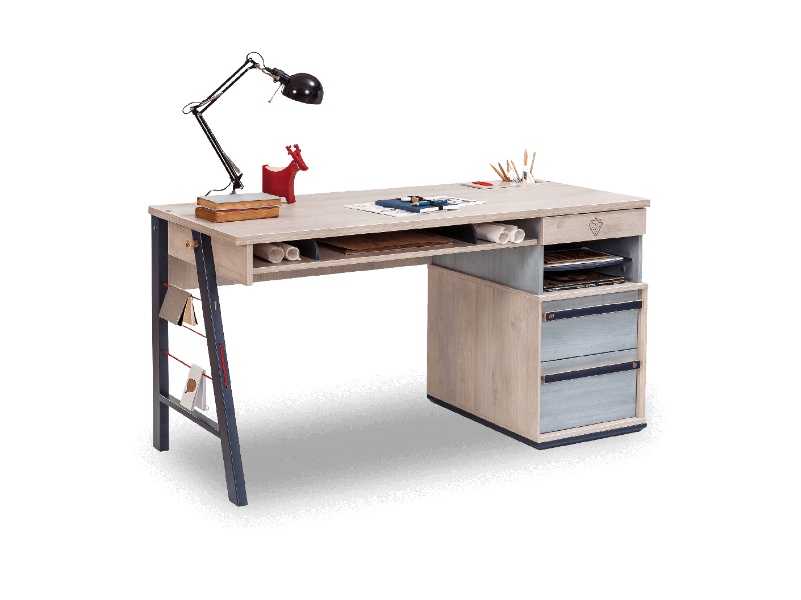 Biroul are doua spatii deschise, doua sertare adanci un serta mai mic pentru depozitare.