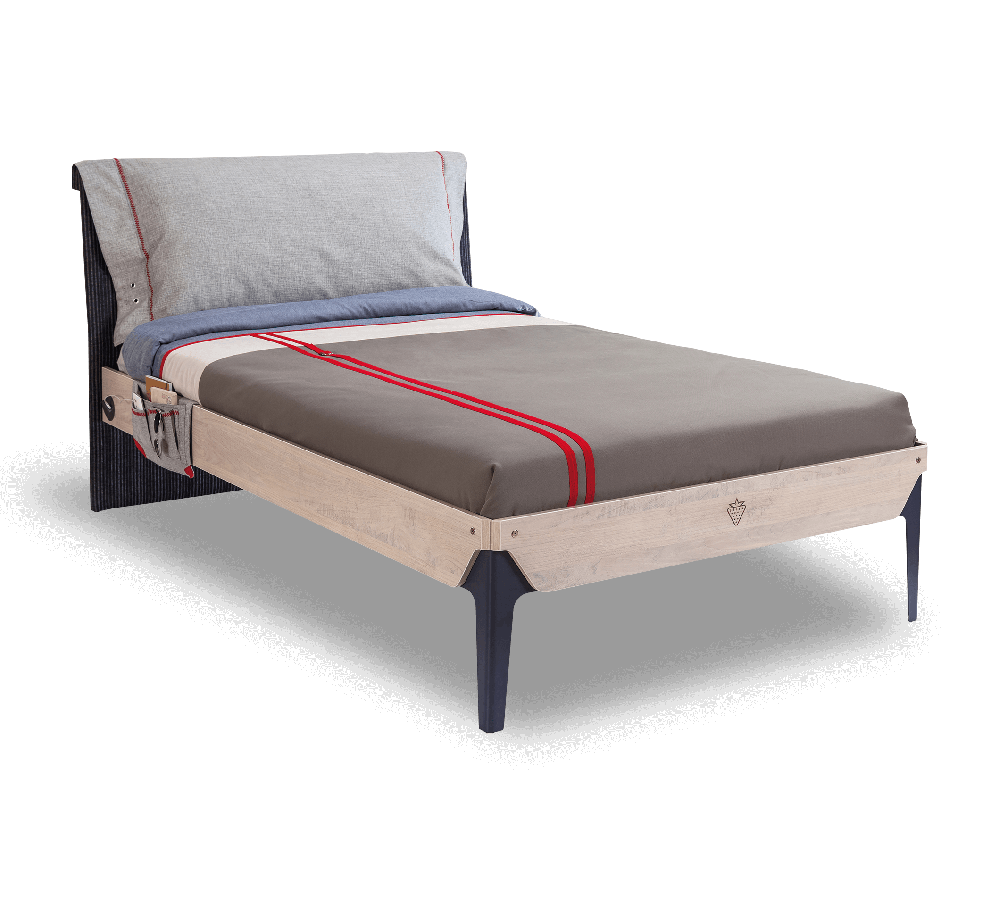 Patul are buzunar din material textil.