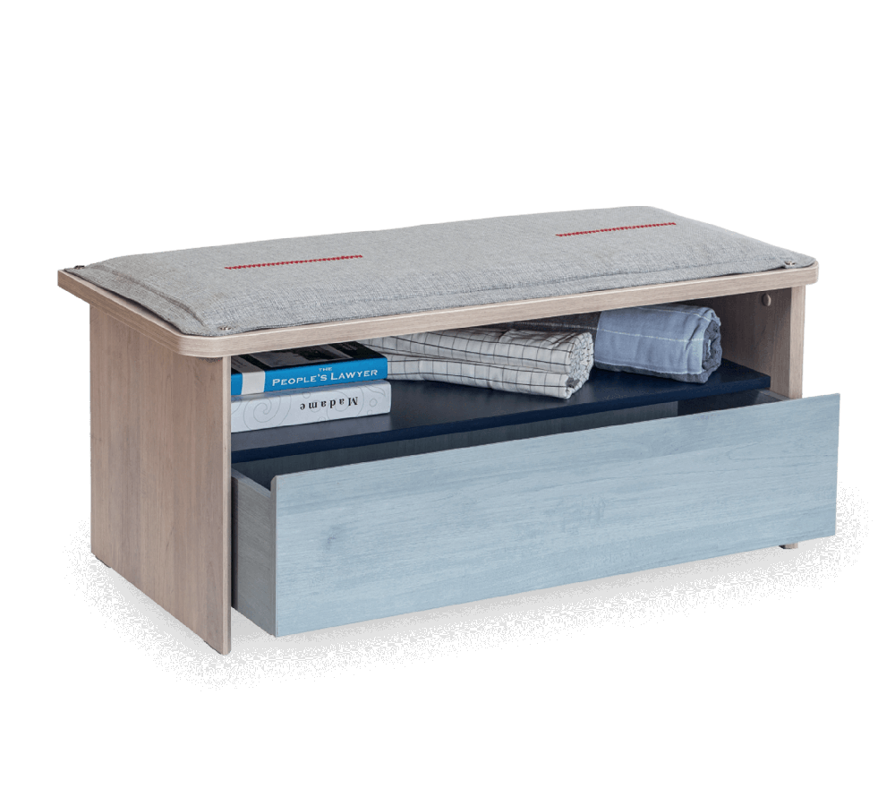 Taburetul poate fi folosit atat pentru sedere, cat si pentru depozitare.