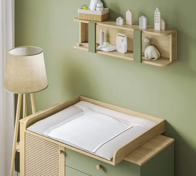Masa de infasat din pal melaminat se transformabila in etajera. Ea reprezinta o piesa de mobilier usor de integrat in interiorul locuintei.