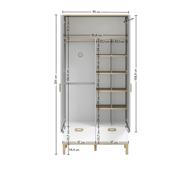 95 / 201 / 52.5 cm