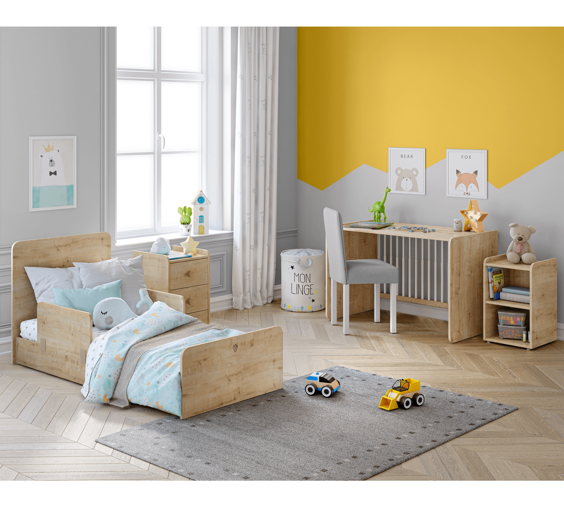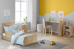 Acesta mai poate fi utilizat pe o perioada mai lunga de timp, transformandu-se intr-un pat pentru o persoana si doua noptiere.