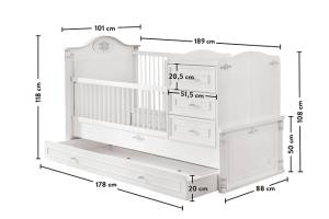 Patut transformabil cu pat suplimentar (80x180cm) ROMANTIC BABY