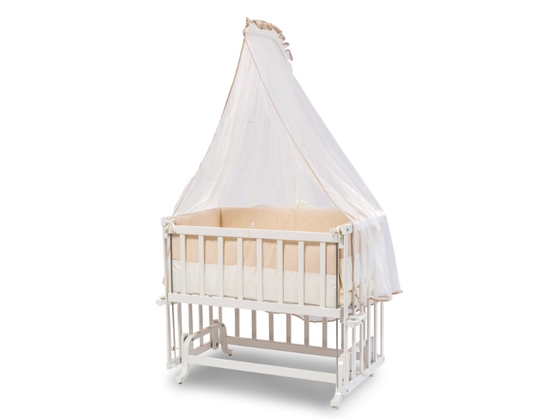 Produsul include, de asemenea, un set de protecție laterală, saltea, pernă decorativă și baldachin.
