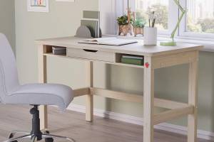 Biroul are un sertar cu role pentru o deschidere si inchidere usoara.