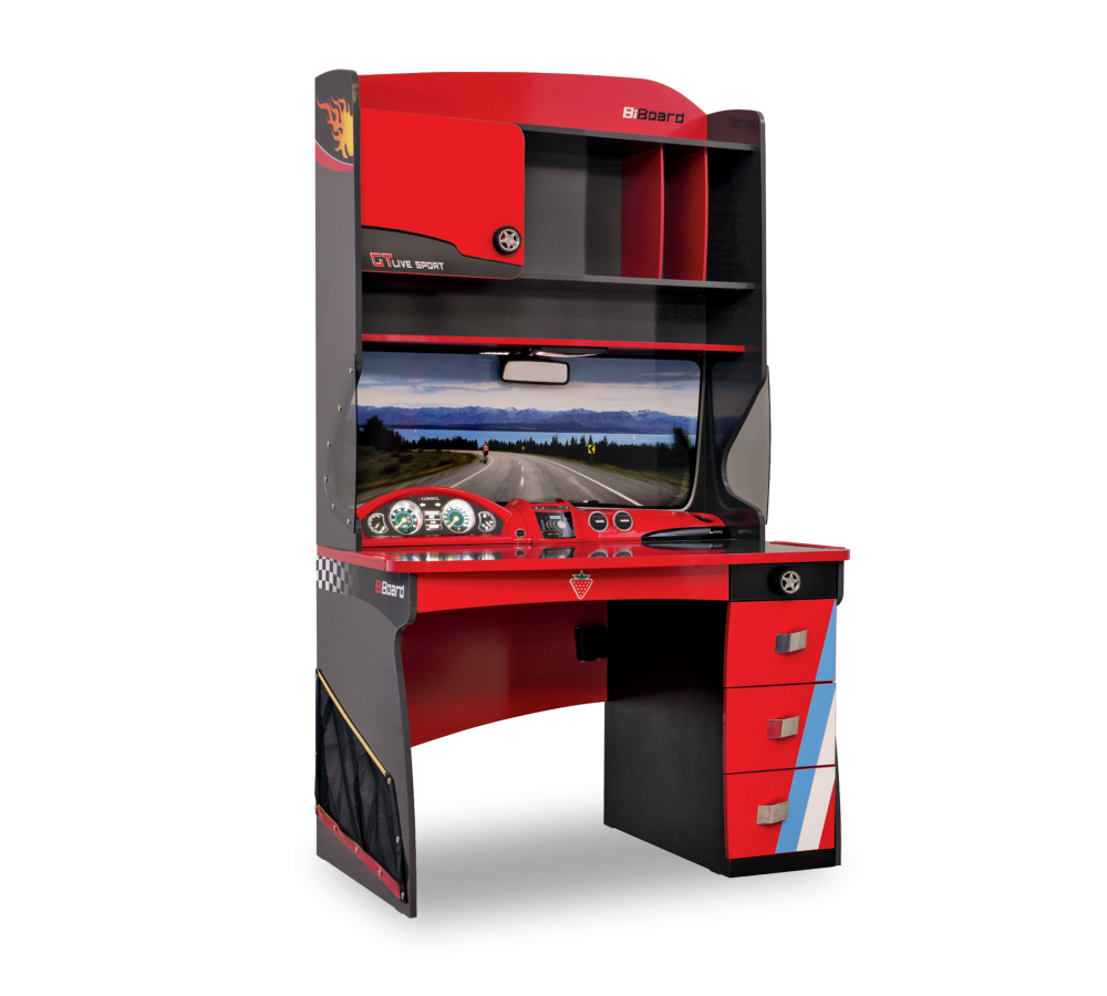Biroul are sertare adanci cu sistem de amortizare pentru inchidere lina si silentioasa.