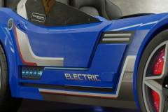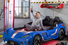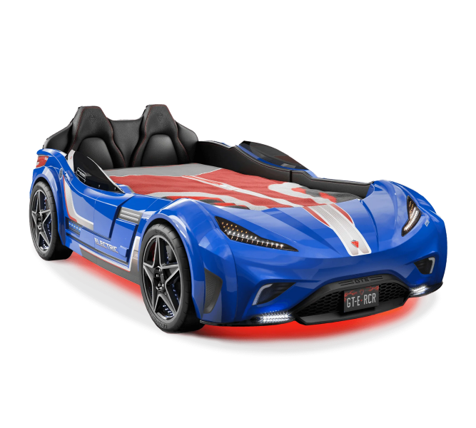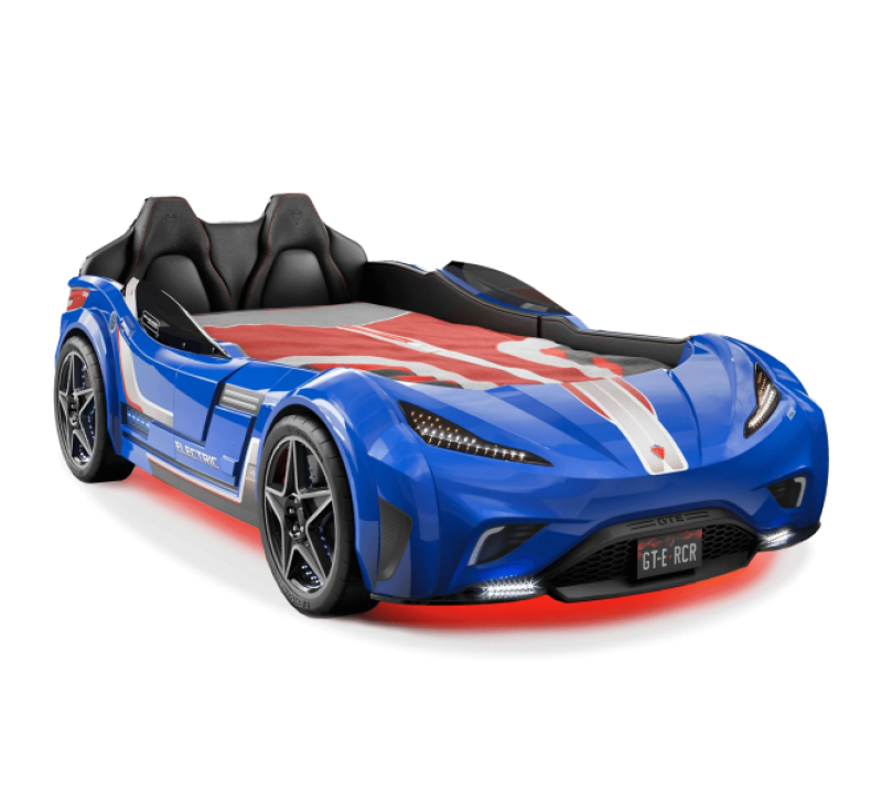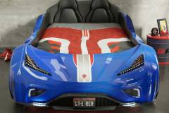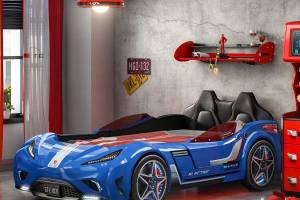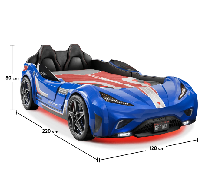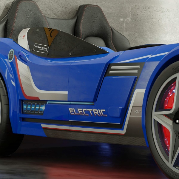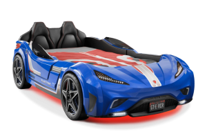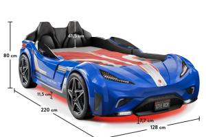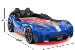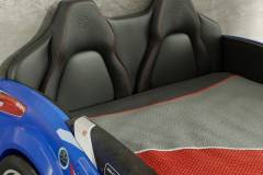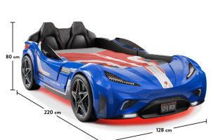Patul contine tăblie în formă de scaun de maşină din piele ecologică.