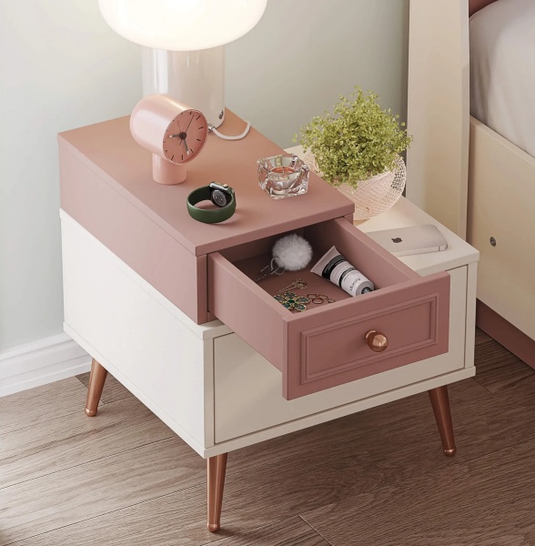 Picioarele si manerele sunt in nuanta rose gold.