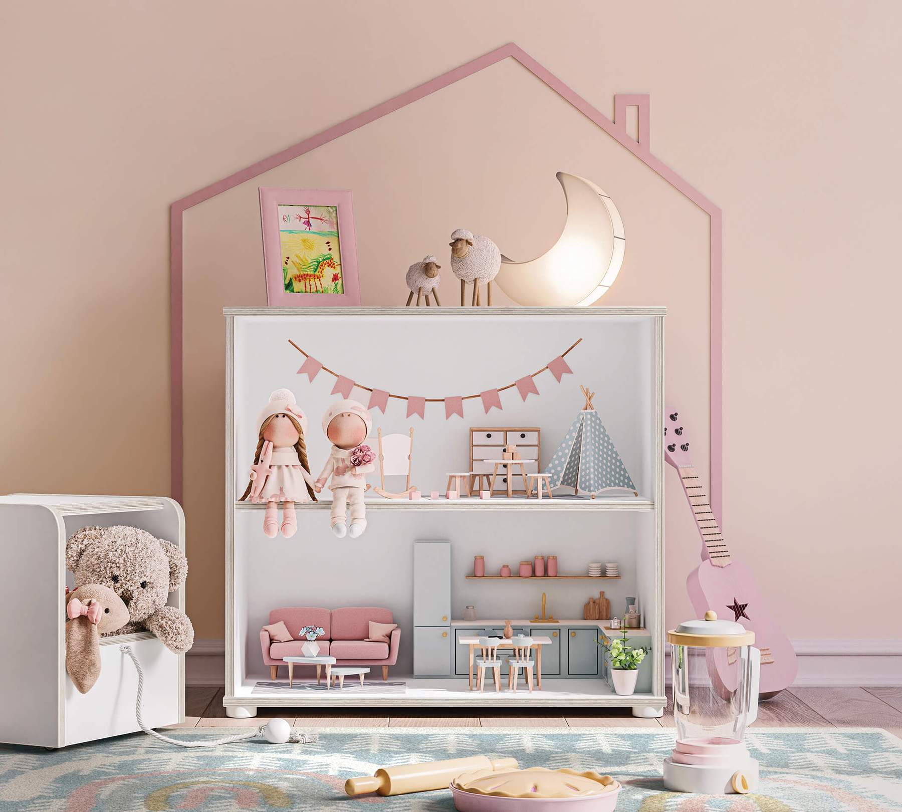 Pretul afisat NU INCLUDE jucariile, taburetul si accesoriile din imaginea de prezentare a produsului.