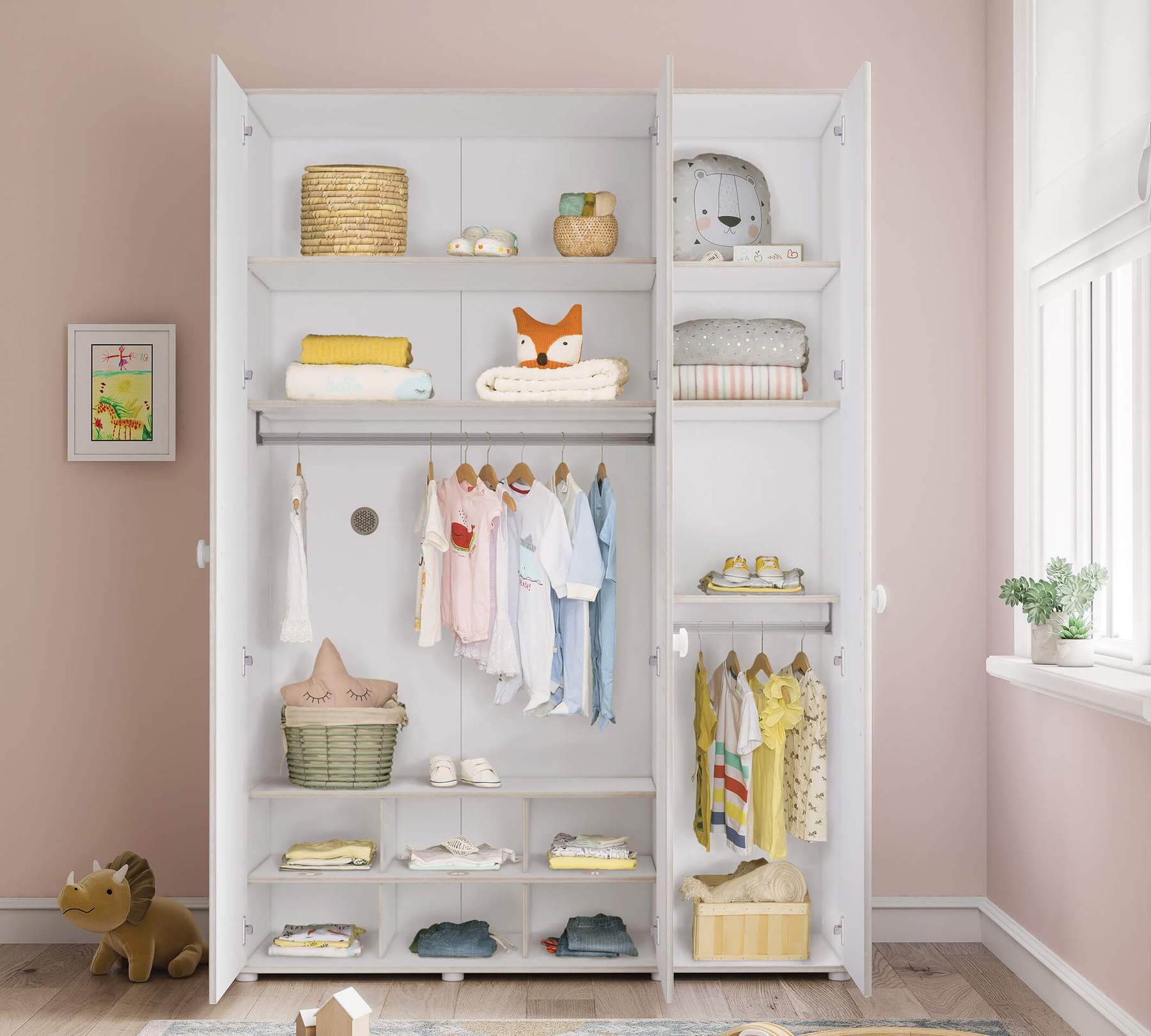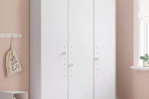 Rafturile și umerașele din garderobă sunt concepute în funcție de înălțimea copilului, de raporturile de vârstă si cu un sistem mobil aleatoriu în trei etape.