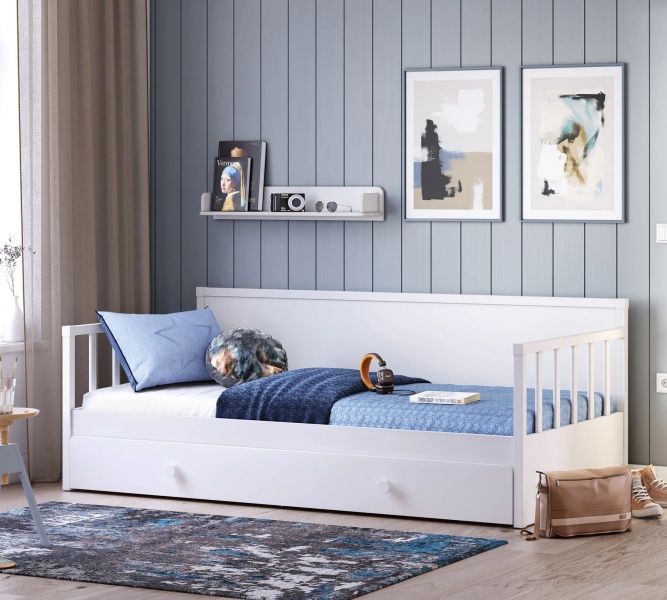 Sertarul se poate utiliza ca spatiu pentru depozitare sau se poate adauga o saltea pentru a fi folosit ca pat suplimentar.