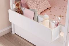 - poate fi agatat de tablia patului prin sistemul de prindere