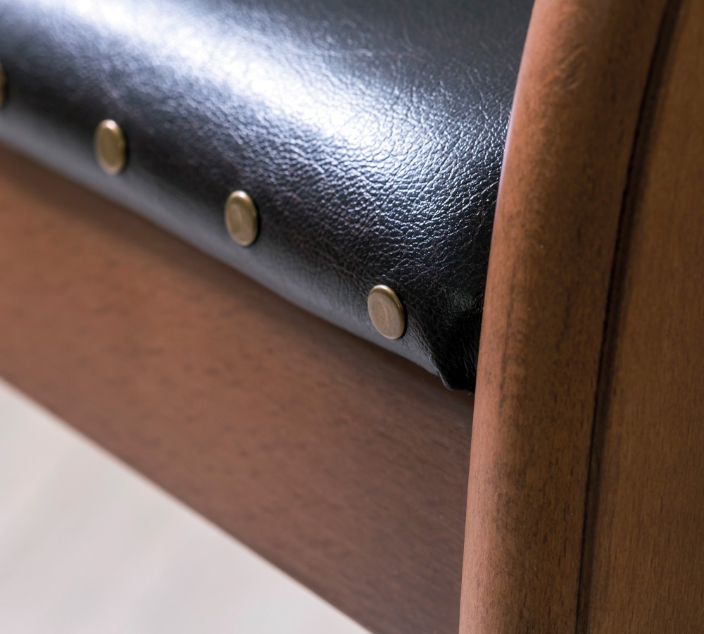 Șezutul și spătarul sunt tapițe cu ecopiele.