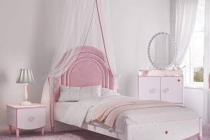 Patul are tablie tapitata din stofa.