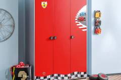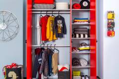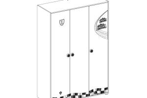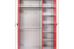 Dulapul contine sertare, rafturi, sine pentru haine.