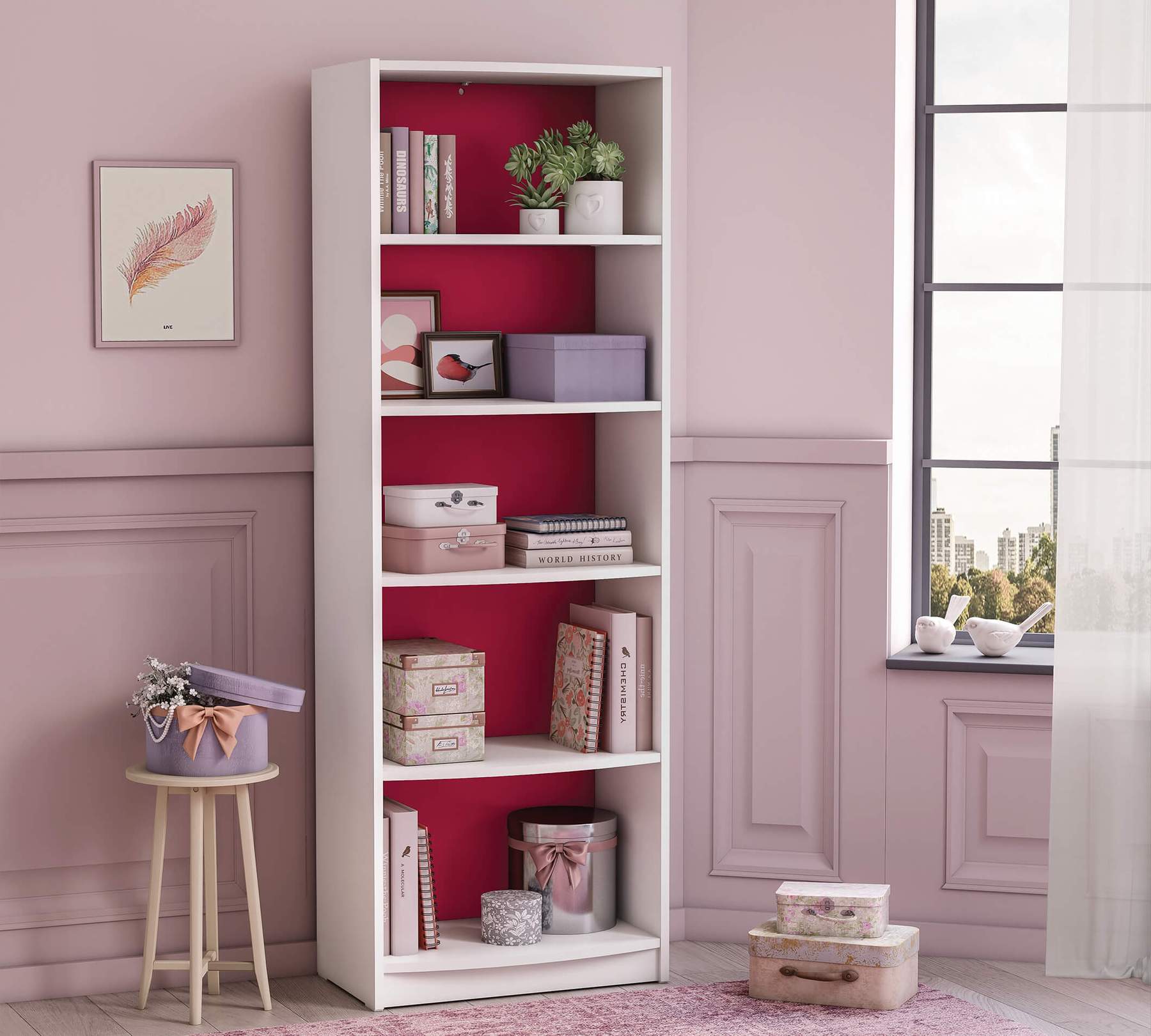 Biblioteca are spatii pentru depozitarea si aranjarea diverselor obiecte.