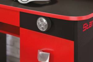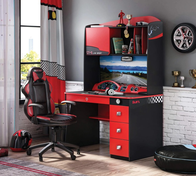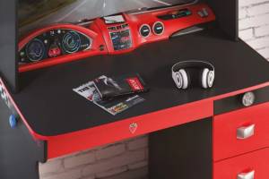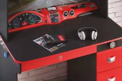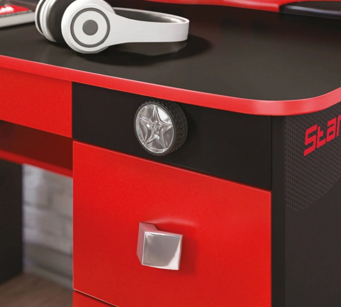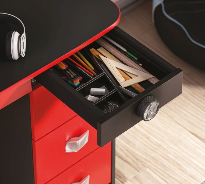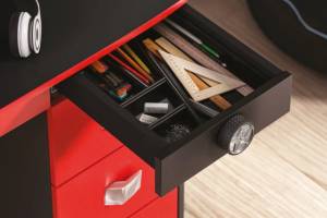 Biroul are sertare adanci cu sistem de amortizare pentru inchidere lina si silentioasa.