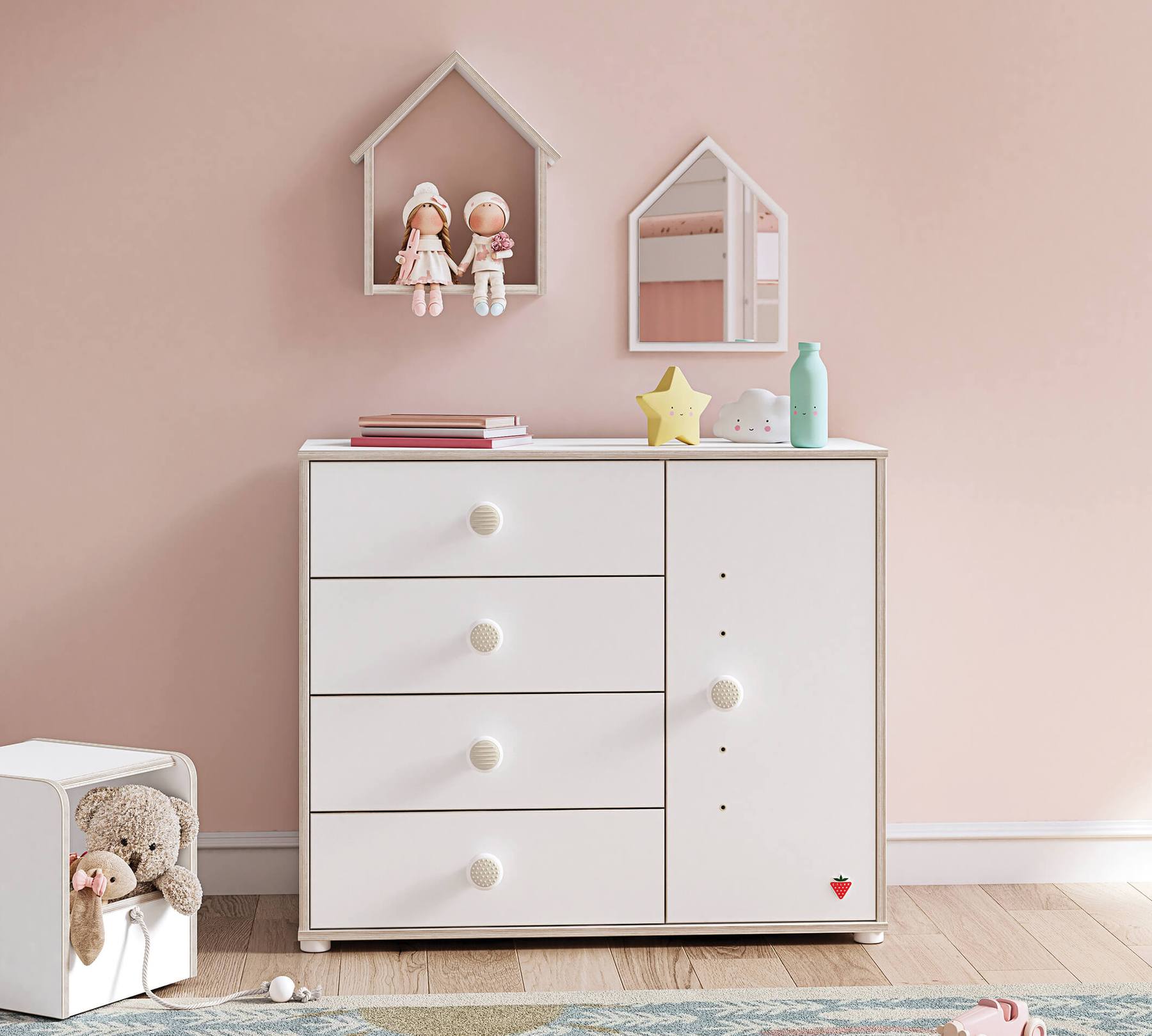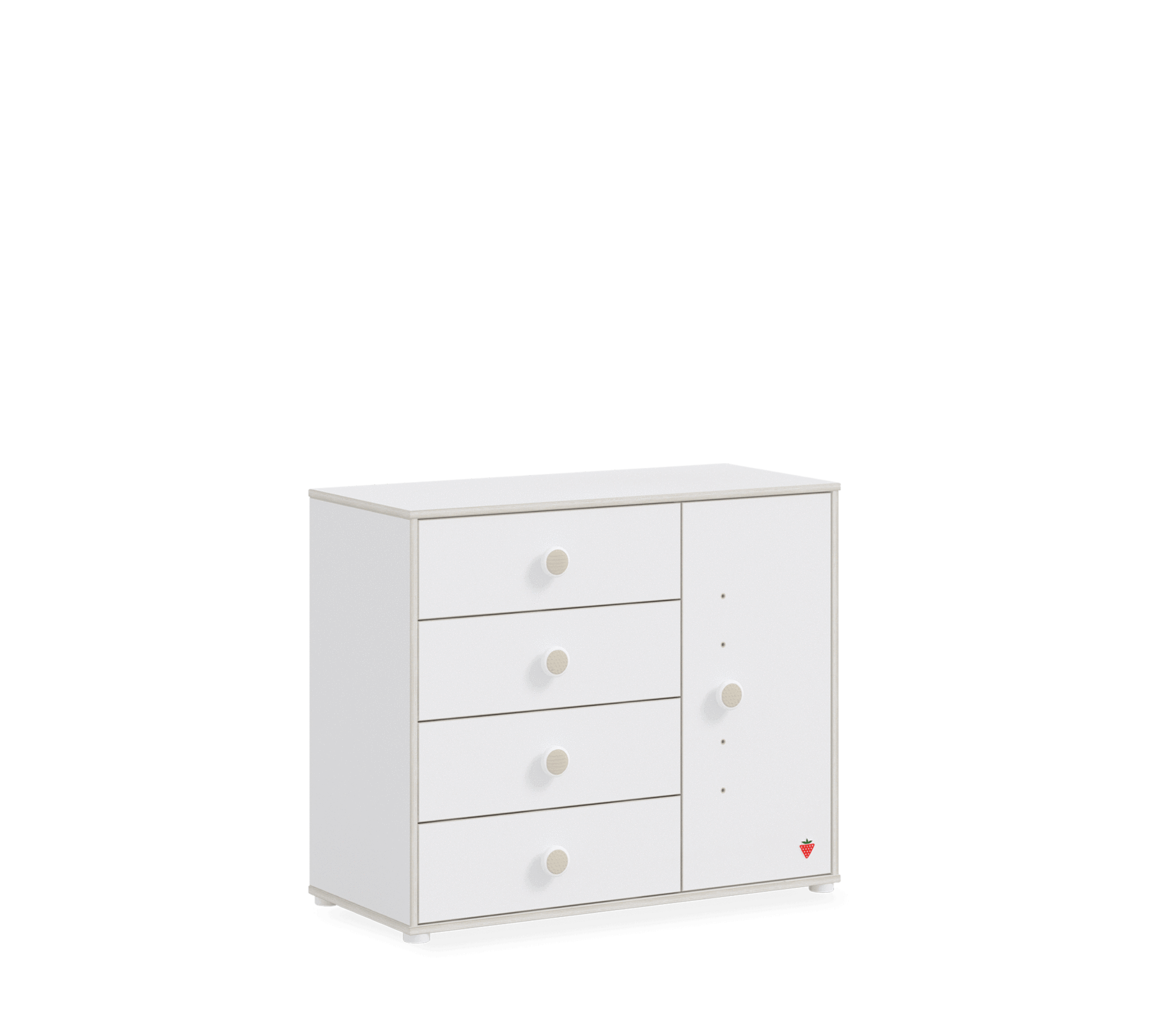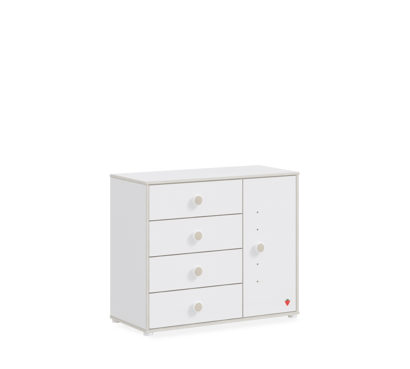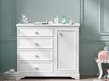 Comoda MONTES BABY WHITE – simpla si functionala, perfecta pentru camera copilului! Design modern alb, cu spatii generoase de depozitare: 3 sertare si un dulap. Organizare eficienta si siguranta pentru toate lucrurile esentiale. Adauga un plus de stil si utilitate incaperii!