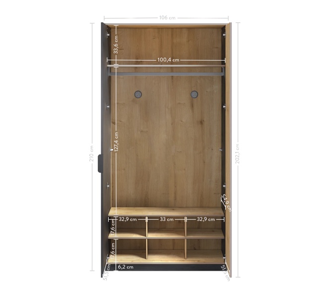 Dulapul este compartimentat in interior precum in poza de prezentare.