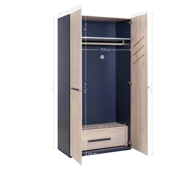 Pretul afisat nu include montajul, raftul din interiorul dulapului (COD: 20.40.1004.00), alte piese de mobilier si accesoriile din imaginea de prezentare a produsului.