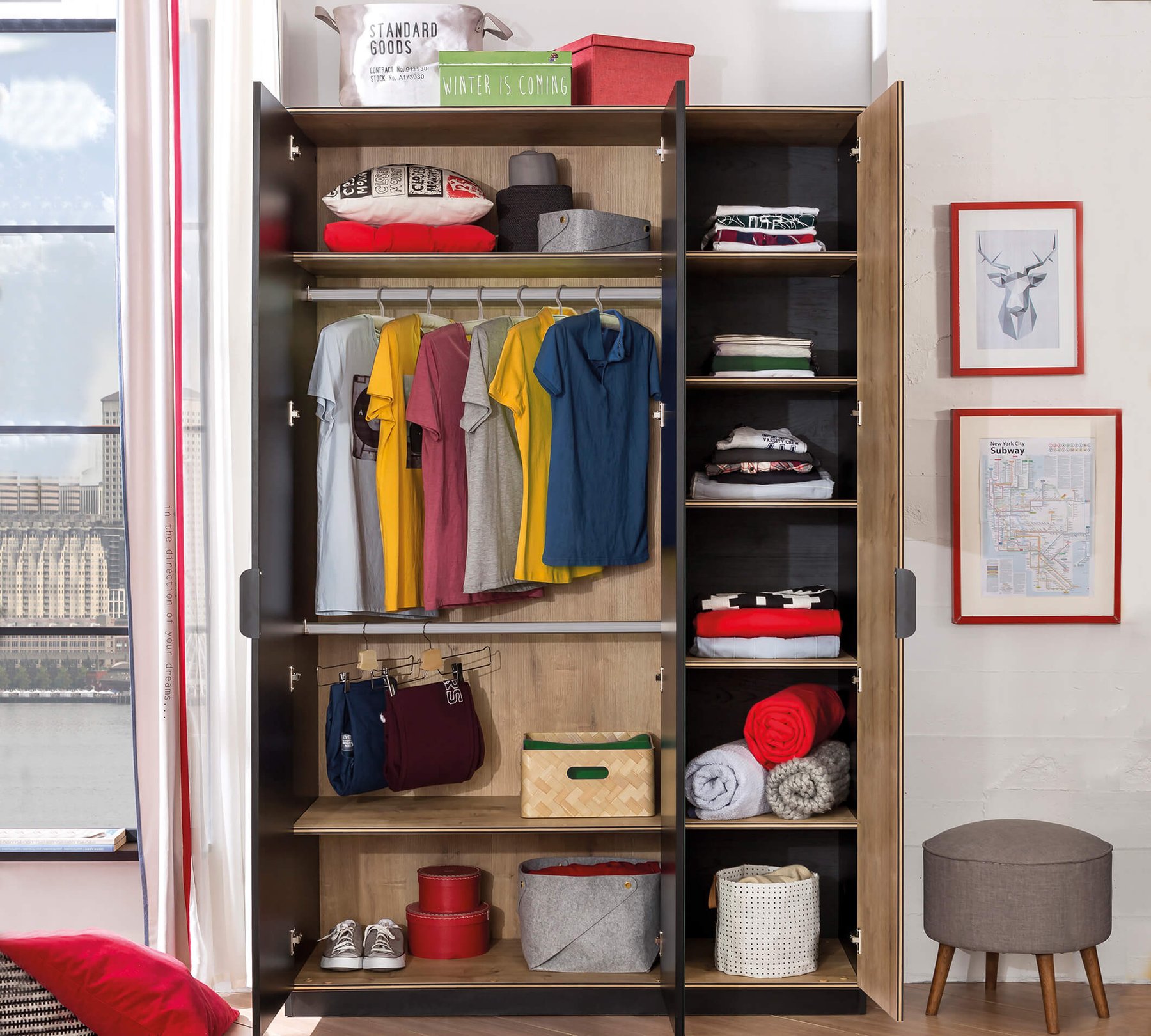 Compartimentarea dulapului este cea din poza de prezentare.