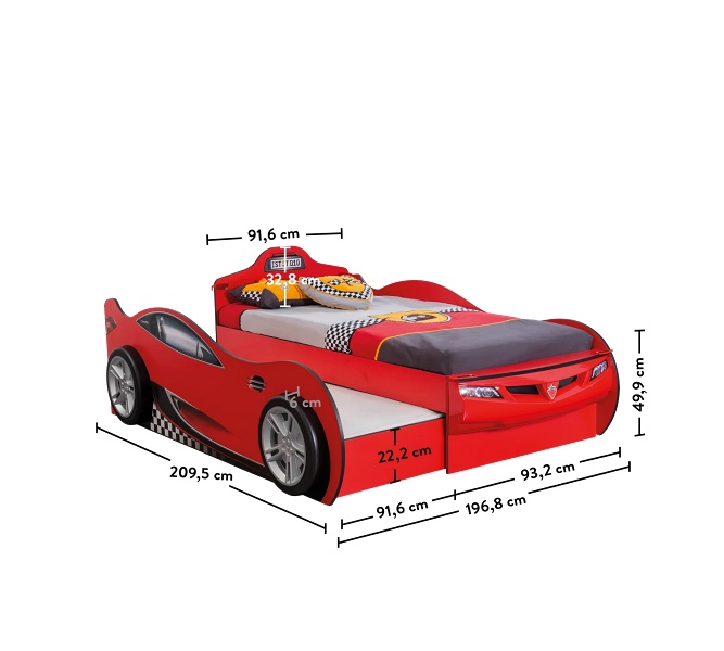 Furnizorul recomanda utilizarea unei saltele pentru patul principal cu dimensiunile: 90 x 190 x 19 cm, iar pentru patul suplimentar o saltea cu dimensiunile: 90 x 180 x 19 cm.