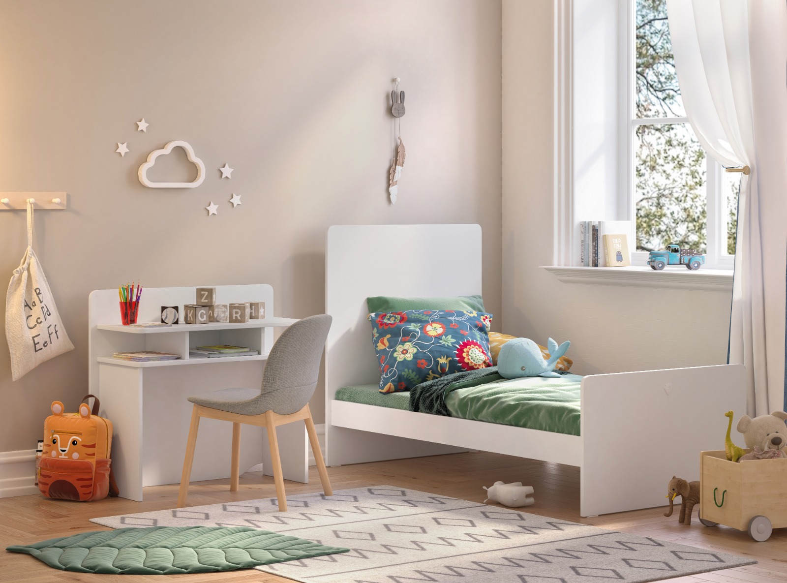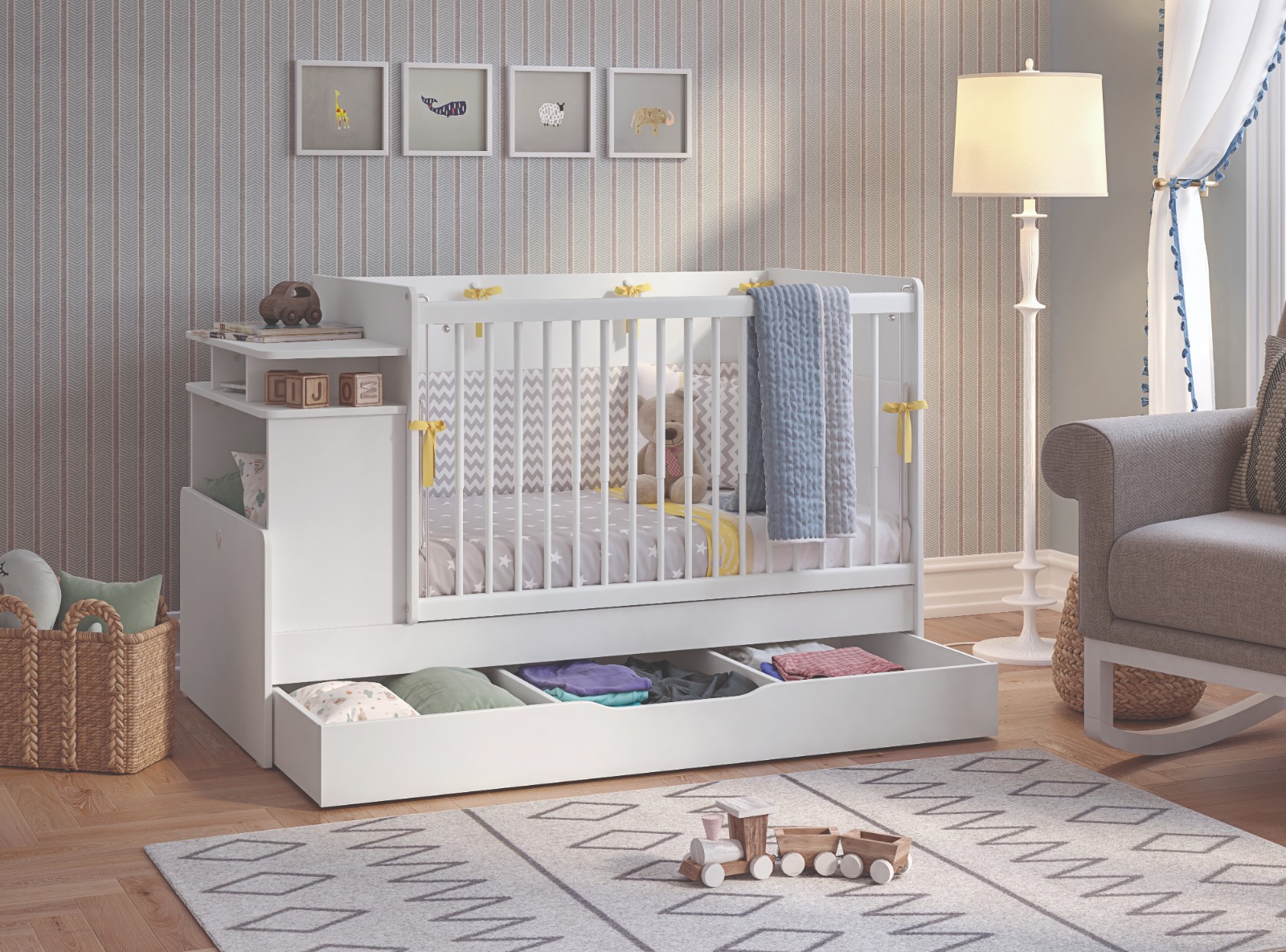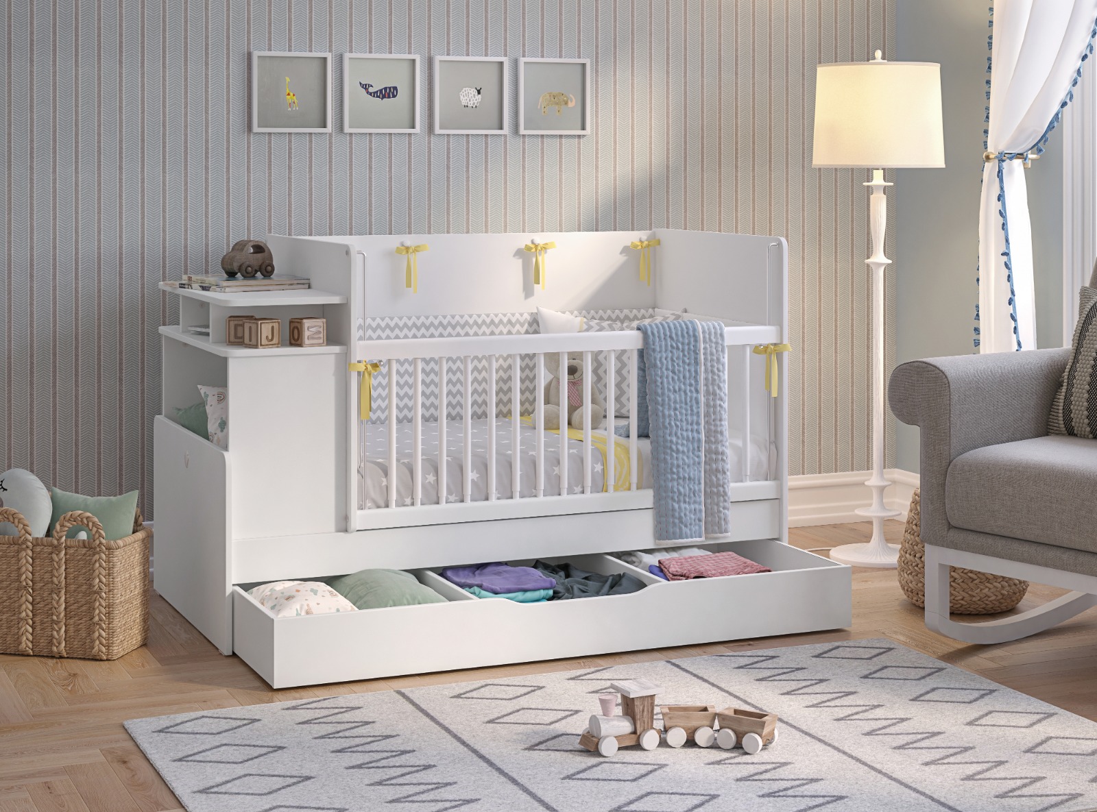 Patutul transformabil Baby Cotton are o utilitate indelungata putand fi transformat in pat pentru o persoana si un birou.