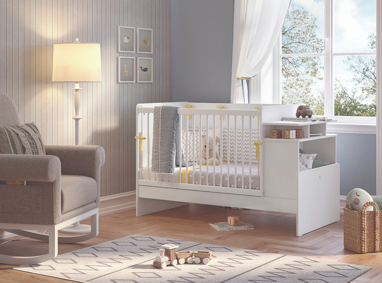 Marginile rotunjite ale patutului vor proteja copilul de accidentari pentru a avea un somn cat mai linistit.