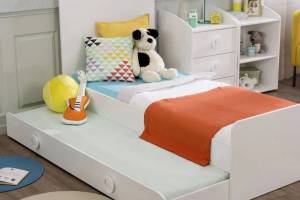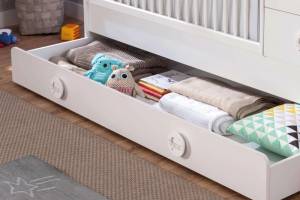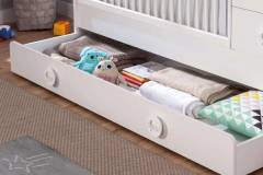 Sertarul de la baza patului se poate utiliza ca suprafata pentru dormit sau ca spatiu pentru depozitare.