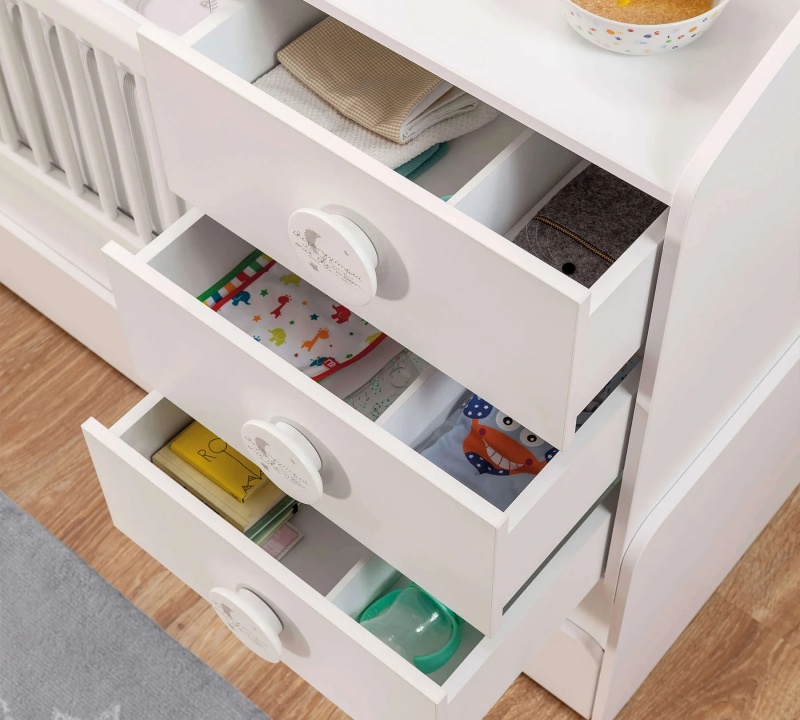 Marginile rotunjite ale patutului vor proteja copilul de accidentari pentru a avea un somn cat mai linistit.