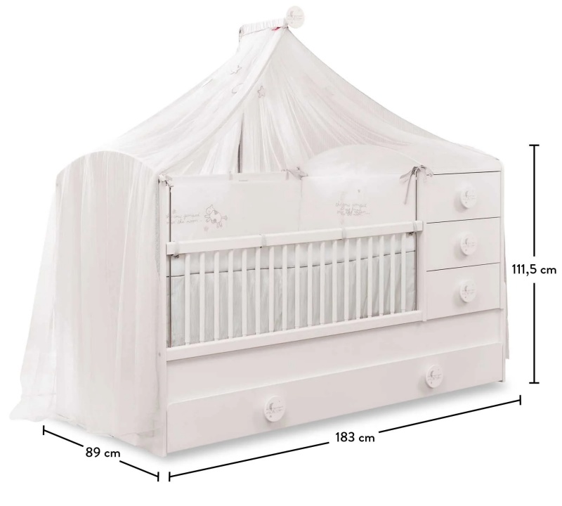 Patutul transformabil Baby Cotton are o utilitate indelungata putand fi transformat in pat pentru o persoana si 2 noptiere.