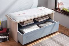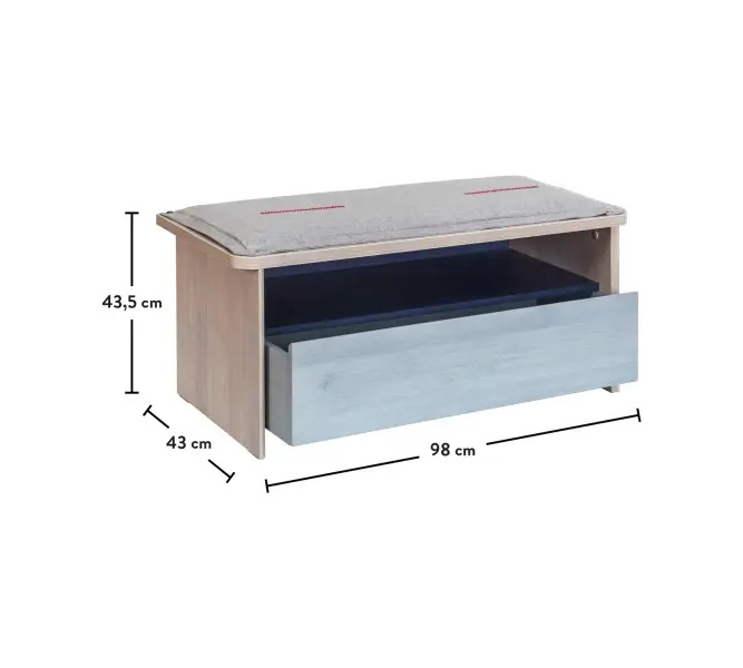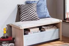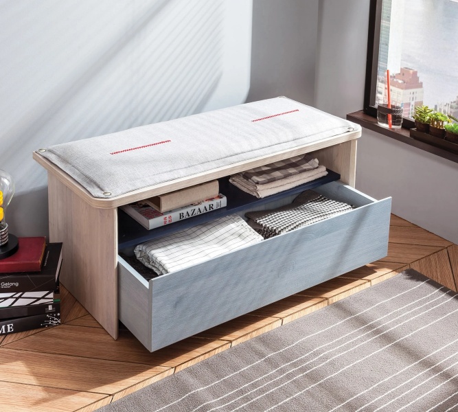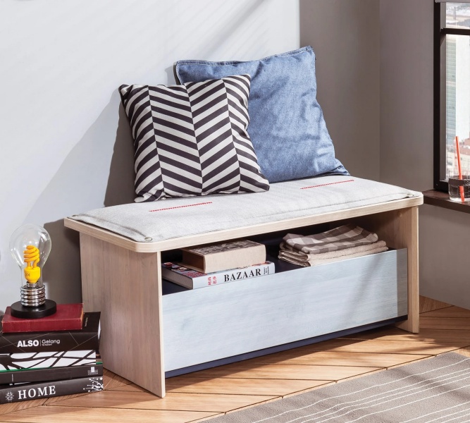 Taburetul poate fi folosit atat pentru sedere, cat si pentru depozitare.