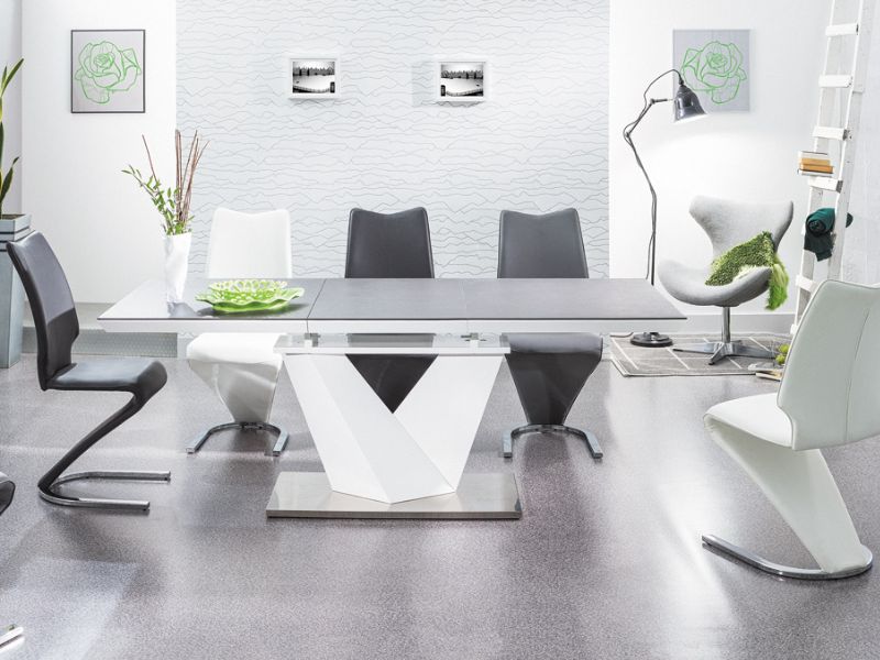 Masa extensibila ALARAS II din MDF negru si alb 140-200x85xH75cm
