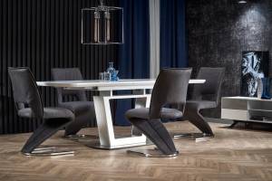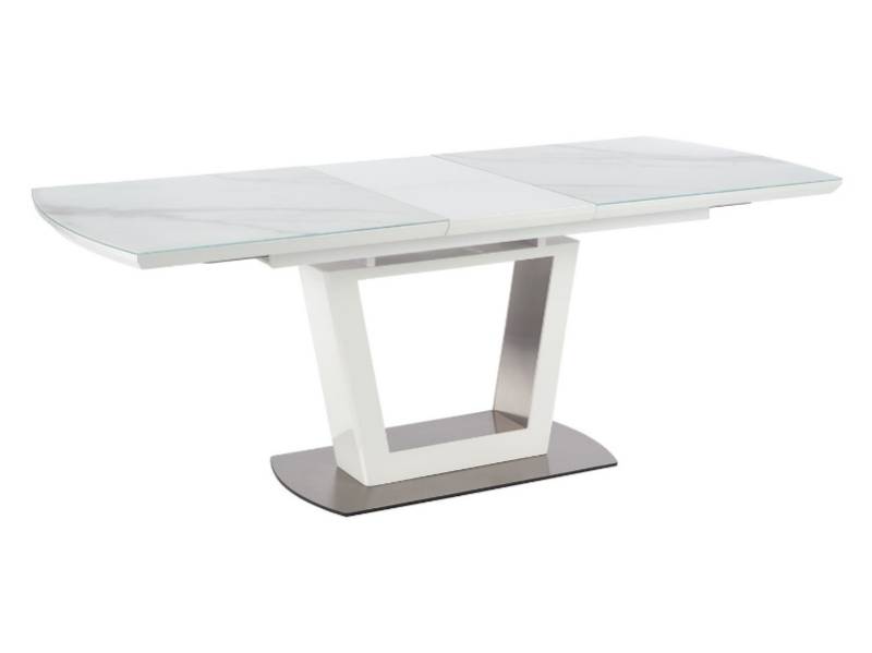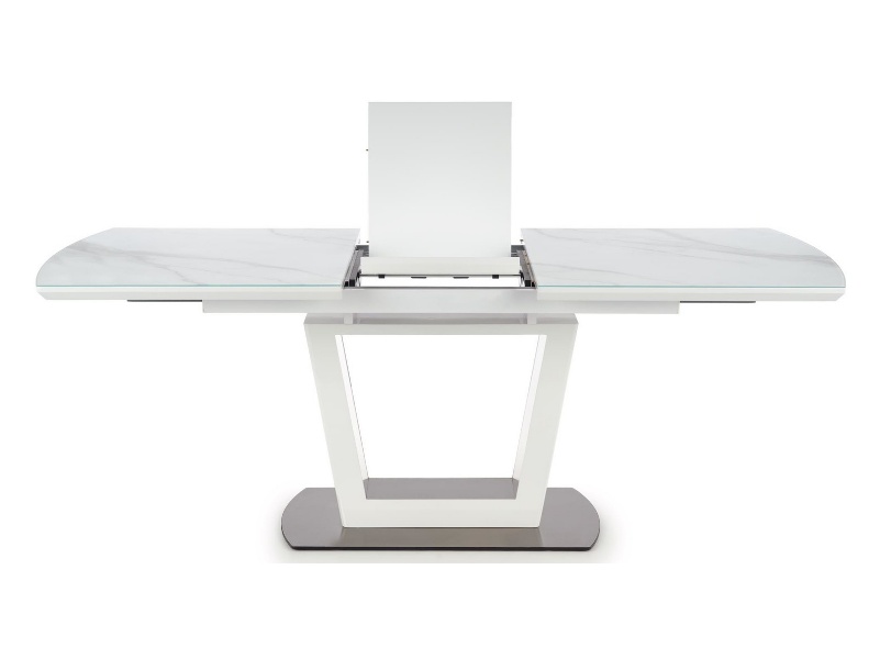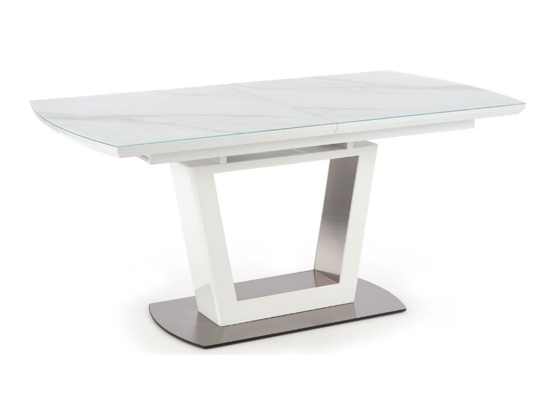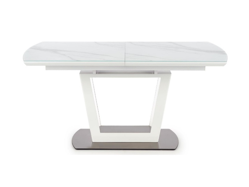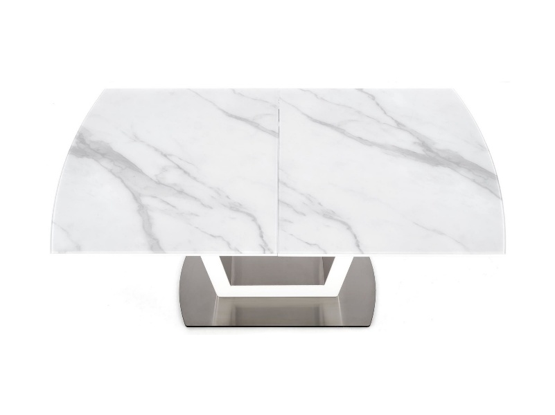 Masa extensibila BLANCO din sticla si MDF cu efect de marmura alba, metal alb 160-200x90xH76cm