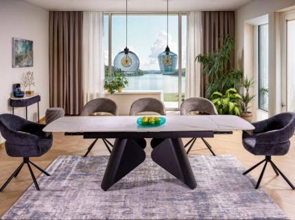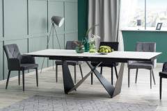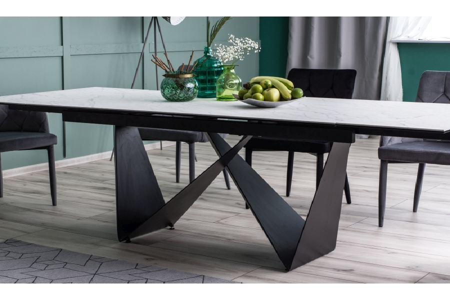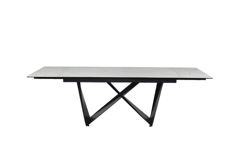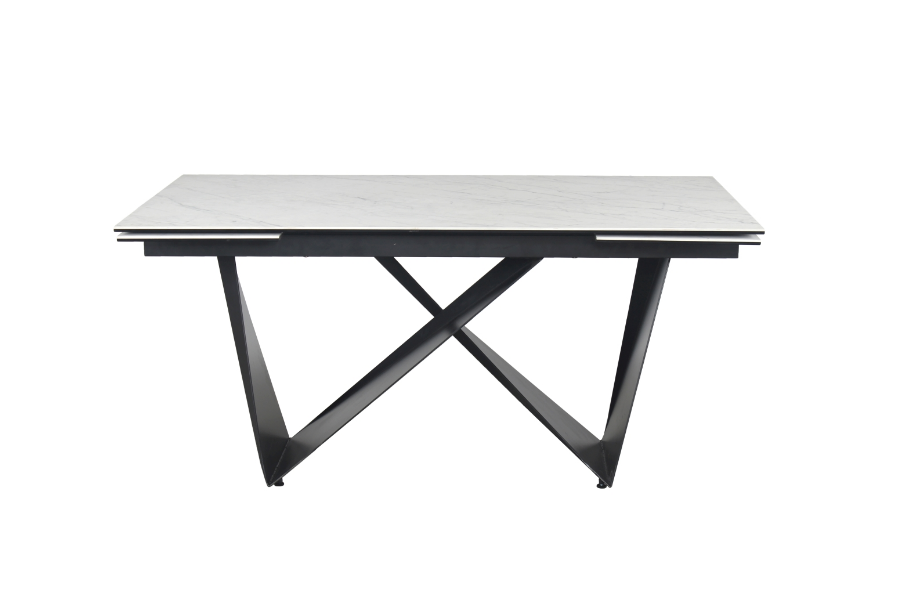Masa extensibila CAVALLI II CERAMIC din ceramica cu efect de marmura alba, metal negru 160-240x90xH76cm