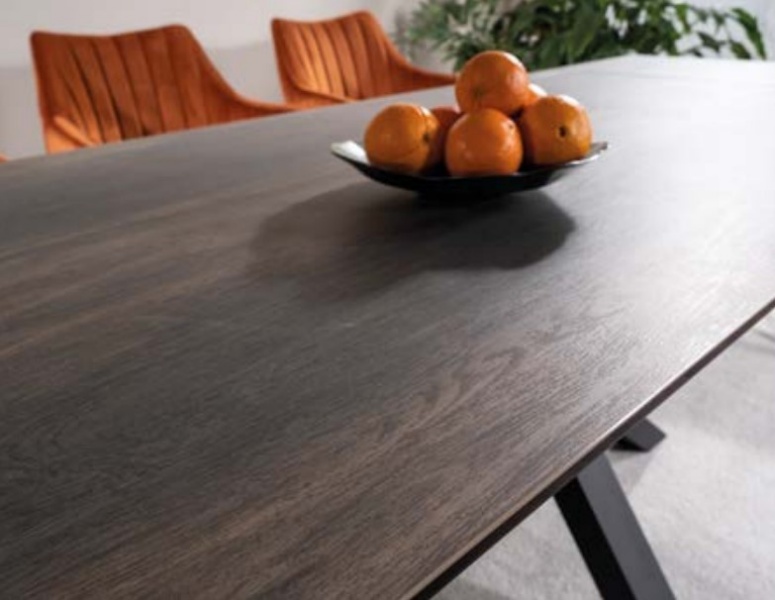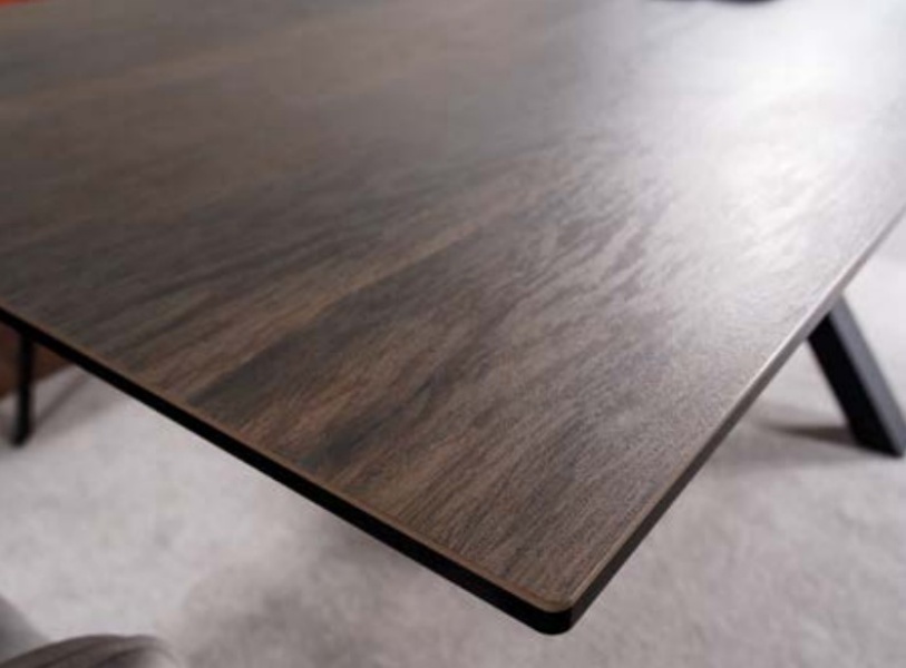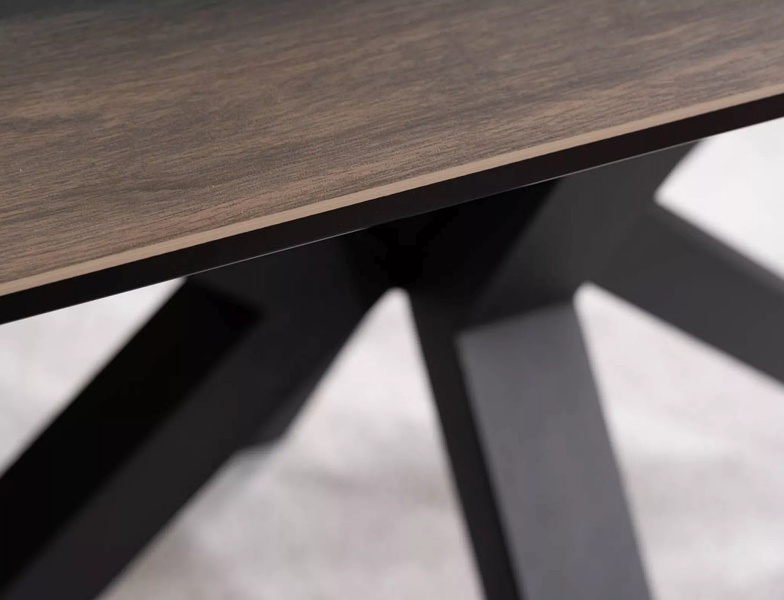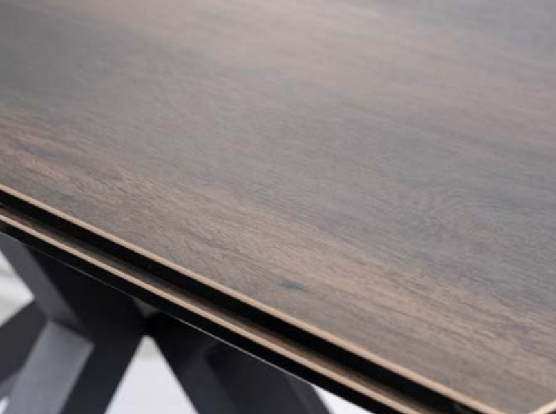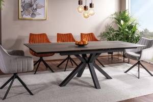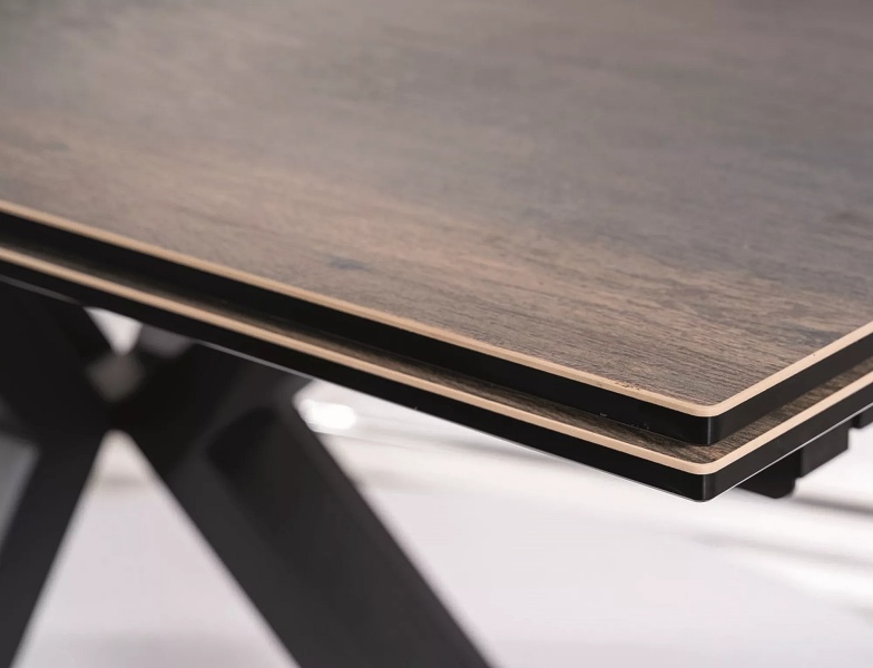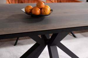 Masa extensibila COLUMBUS CERAMIC din ceramica cu efect de marmura maro, metal negru 160-240x90xH76cm