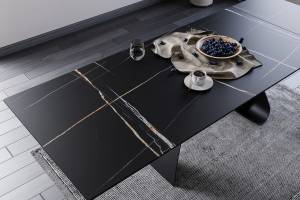Masa extensibila DIUNA CERAMIC BLACK din ceramica cu efect de marmura Sahara Noir negru, metal negru 160-240x90xH76cm
