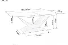 Masa extensibila DOLCE CERAMIC din sticla securizata cu efect ceramic gri, MDF nuc 180-240x95xH76cm