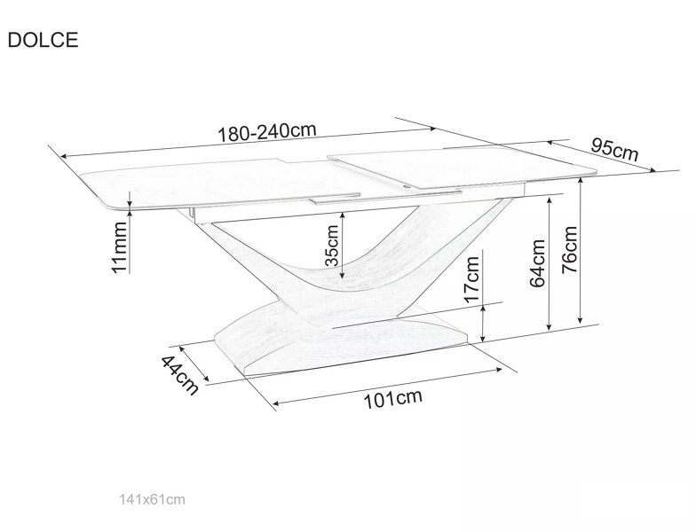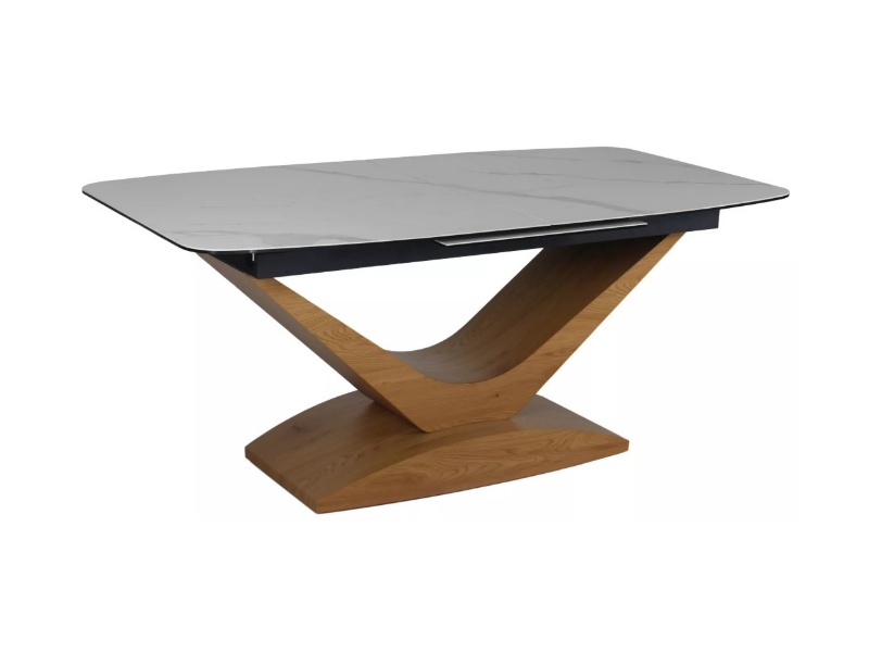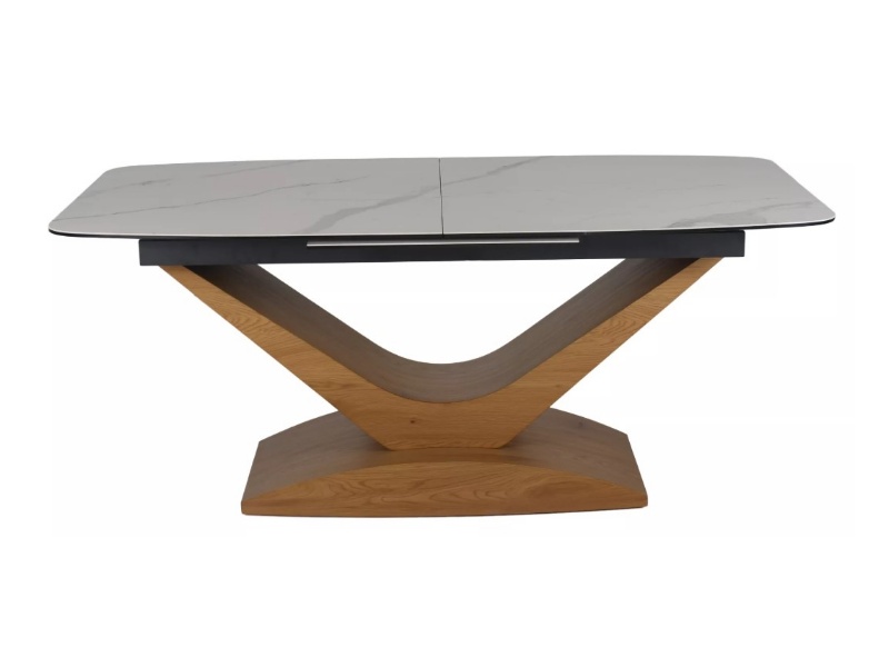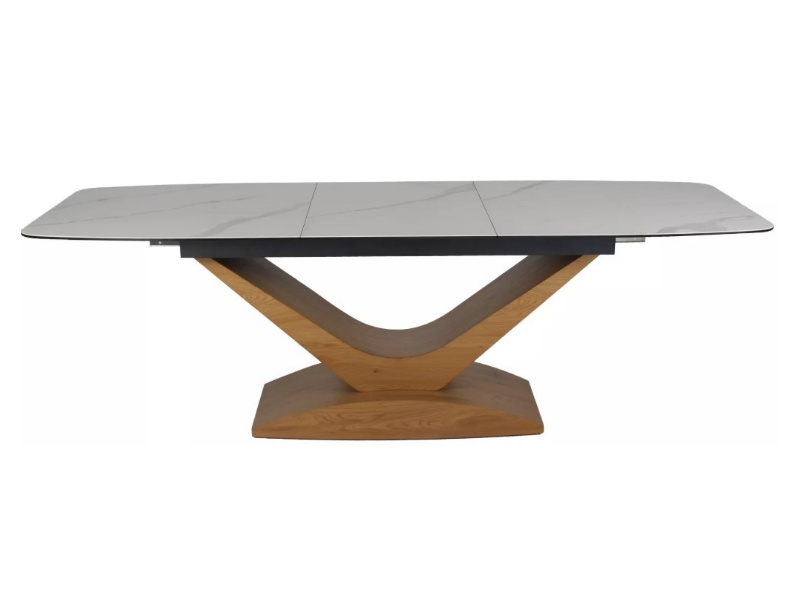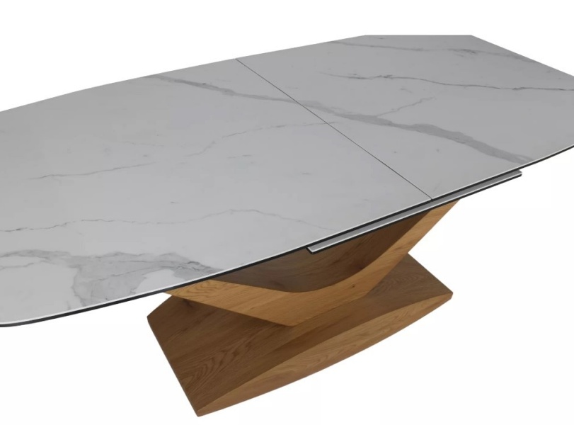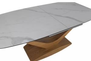 Masa extensibila DOLCE CERAMIC WHITE din ceramica cu efect de marmura alba, MDF stejar 180-240x95xH76cm