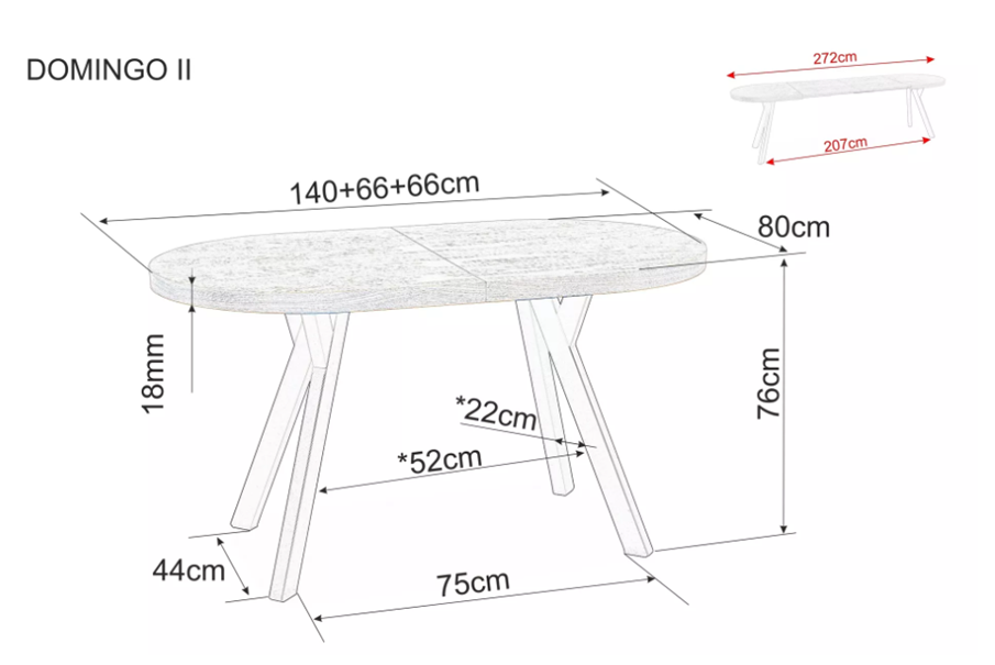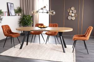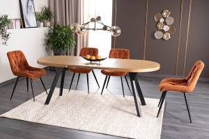 Masa extensibila DOMINGO II din furnir natural stejar, metal negru 140-272x80xH76cm