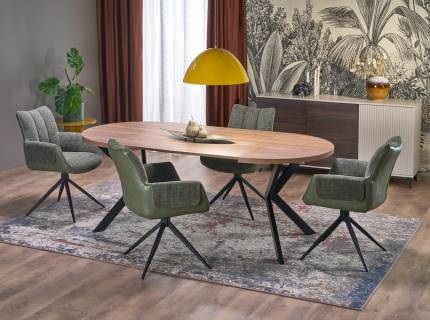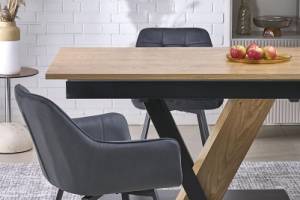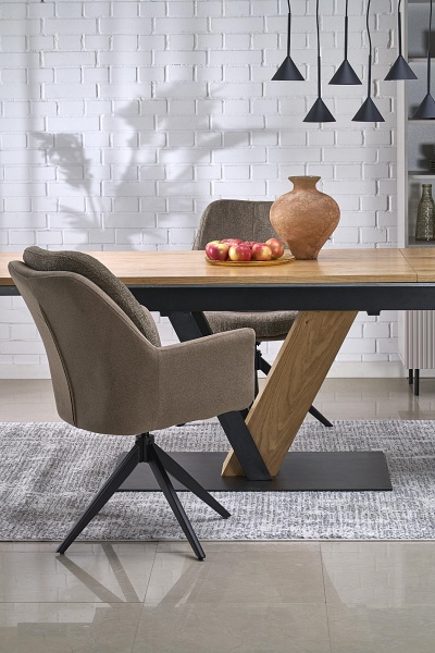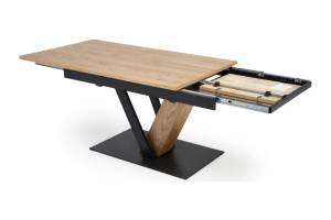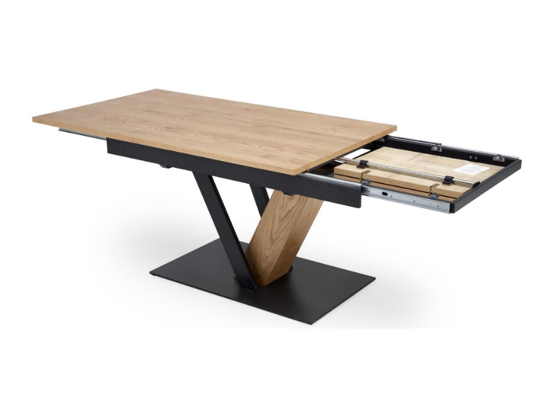 Masa extensibila FANIS din MDF si furnir natural stejar, metal negru/ natural 160-220x90xH78cm