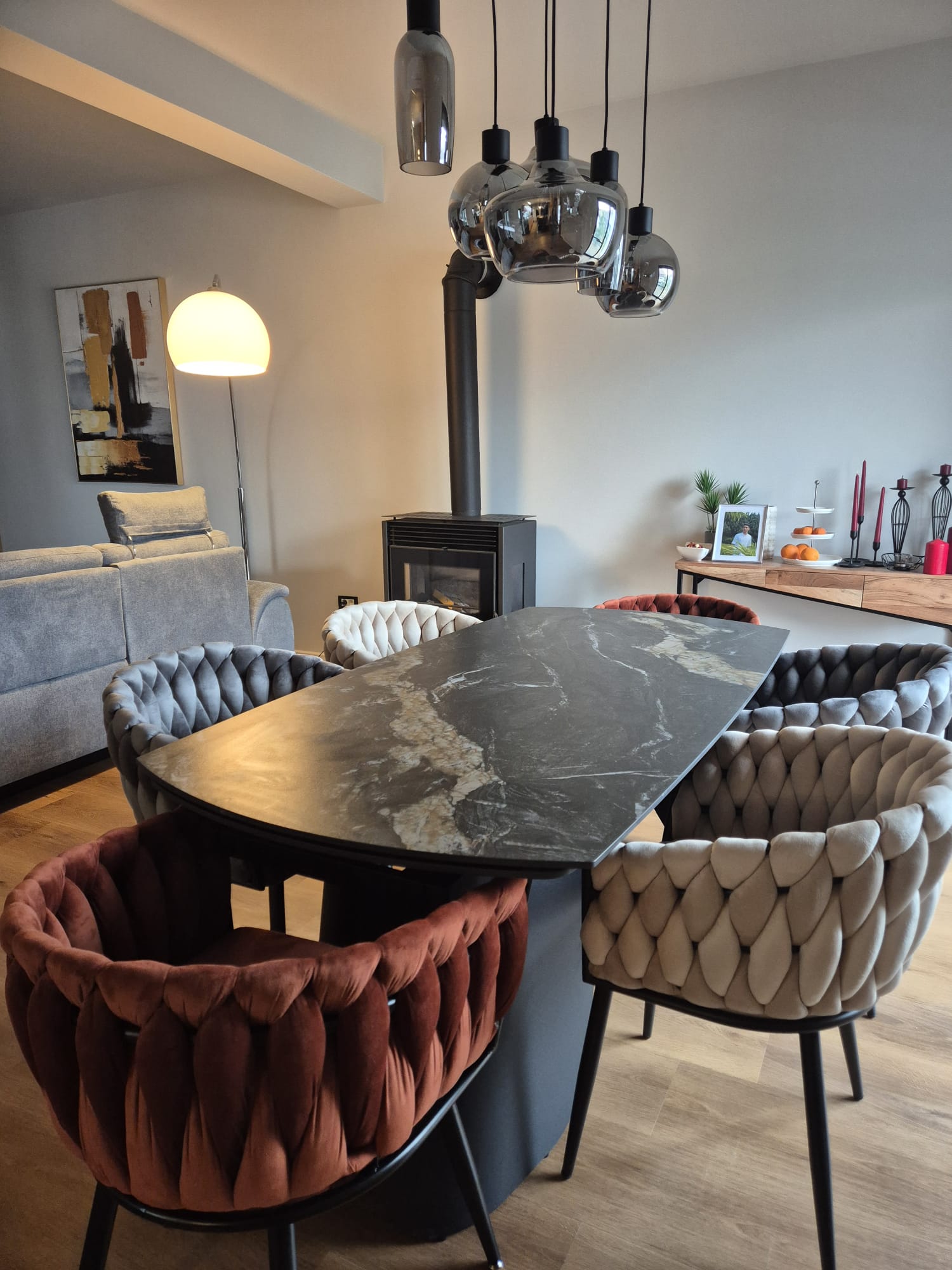 Scaunele NU sunt incluse in pret dar se pot achizitiona separat: https://www.mobelhaus.com/cauta?termen=k570 / https://www.mobelhaus.com/cauta?termen=k574