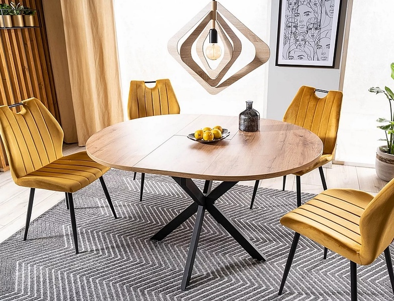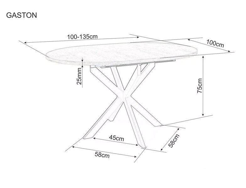Masa extensibila GASTON ARTISAN 100 din MDF stejar artisan, metal negru 100-135xH76cm