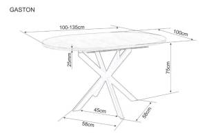 Masa extensibila GASTON CERAMIC BLACK 100 din ceramica cu efect de marmura neagra, metal negru 100-135xH75cm
